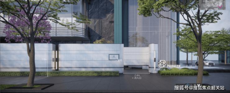 1,长达百米的现代先锋形象界面:酒店式花园入口到达体验,彰显高奢定位。