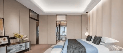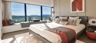 第二种是建面约二百平方米的一线临江环幕大宅。同样拥有一线望江的二百七十度环幕三江视野,独立电梯入户,彰显了主人的尊贵身份。多功能入户花园的设计,增加了玄关的仪式感和实用性。简约半开放式厨房,让美味与品味兼得,既保证了烹饪的便利性,又增加了家庭成员之间的互动。阔绰的双主套房设计,尊享舒奢起居。特别值得一提的是,R9栋为开放式3+1房交付,客厅与书房打通,开间可拓展至七点二米,形成了一个巨大的横厅,非常适合举办家庭聚会或商务沙龙。
