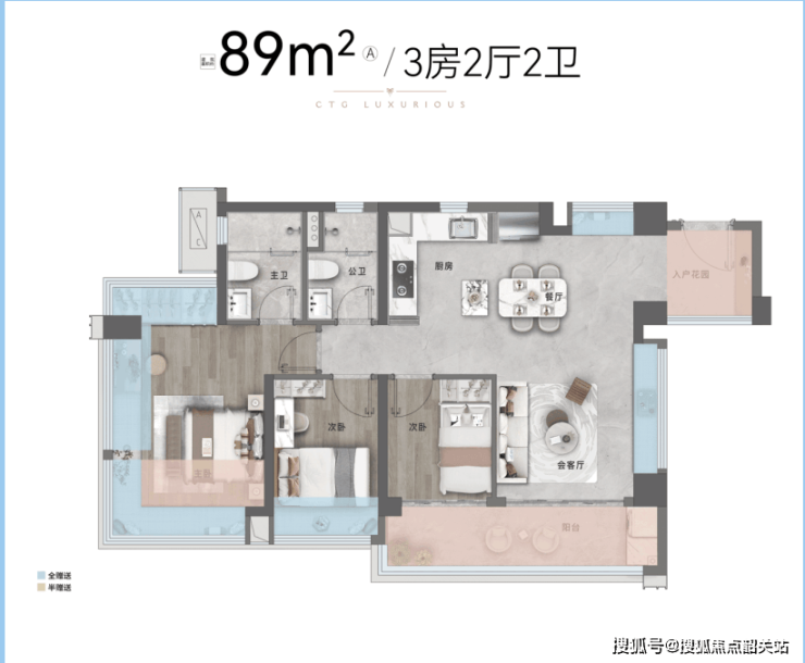 项目主力在售户型为80-141㎡的3-4居室,户型设计方正,空间利用率高,部分户型赠送面积约15.01㎡,实际使用率可达106%(数据来源:项目官方户型评测报告)。主力户型包括:80㎡三房两厅两卫(总价118万起)、89㎡三房两厅两卫(总价137万起)、108㎡四房两厅两卫(总价190万起)、128㎡四房两厅两卫(总价255万起),可满足刚需、改善等不同购房需求。