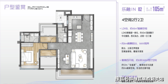 项目由1#、2#两栋超高层住宅组成,总高49层,采用3梯6户设计,所有户型均为南向四开间布局,采光通风俱佳。更令人惊叹的是其极致的空间利用率——使用率高达约95%,在76㎡的紧凑面积内,竟能实现三房两卫的实用格局;83㎡、105㎡户型则进一步拓展为三至四空间两卫,满足多孩家庭、三代同堂甚至兴趣空间(如乐器房、藏品室、乐高角)的多元需求。