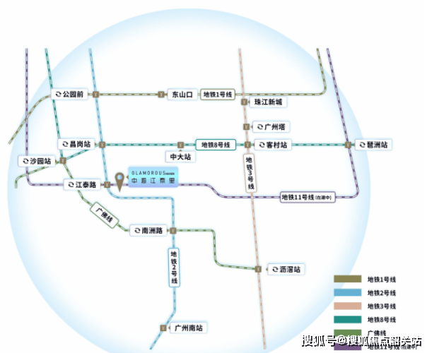 对于都市人而言,通勤效率直接决定生活幸福感。中海江泰里距地铁2号线与11号线(在建)交汇的江泰路站仅约150米,步行约3分钟即达B出口,堪称“地铁上盖”级便利。搭乘2号线,7站直达广州南站,快速接驳高铁网络;7站可达琶洲会展核心区;换乘3号线或8号线,3站到中山大学,7站直抵珠江新城CBD,8站抵达东山口文化地标。未来11号线全线贯通后,更将形成环线效应,串联天河、越秀、荔湾、白云等核心城区,真正实现“半小时生活圈”。