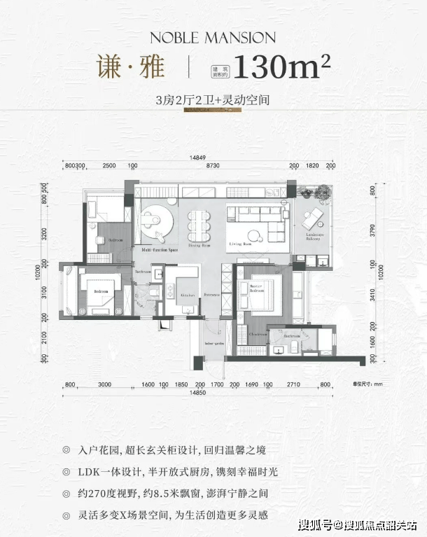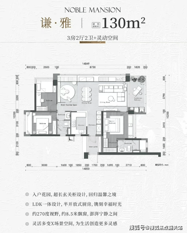 130㎡ | 3+1房2厅2卫:双飘窗设计,独立入户花园,东向瞰园林。