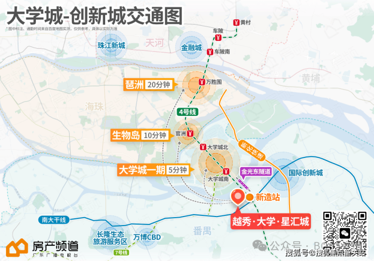 越秀大学星汇城,正是诞生于这一时代风口之上的标杆之作。它不仅仅是一处住宅项目,更是广州城市向南发展、向东拓展战略的微观缩影,是连接传统中心城区与未来创新高地的超级接口。项目雄踞于番禺大学城二期板块的核心腹地,紧邻新造地铁站,占据了不可复制的地理优势与资源禀赋。