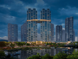 中海大境并非单一住宅项目,而是总建面约36万㎡的E-TOD生态综合体,涵盖3宗住宅用地、3宗商业用地及1宗教育用地。整体采用“以生态为导向的TOD”开发逻辑,在地铁站点500米辐射范围内,高效整合居住、办公、商业、教育与公园功能。建筑外立面以现代简约风格为主,大量运用玻璃幕墙与铝板线条,强调横向延展感;楼栋排布注重风道引导,东西向最大楼间距达260米,有效降低楼宇间视线干扰。这种高密度城区中的低压迫感布局,平衡了城市效率与居住舒适度。