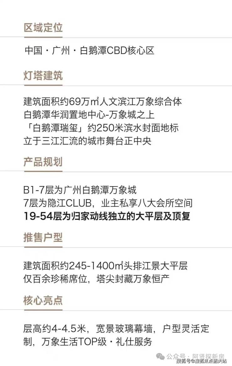 我是置业顾问小廖,长期深耕广州主城核心豪宅与高端资产置业赛道,依托城市板块发展趋势、核心地段价值逻辑与高阶人居需求,全方位解构荔湾白鹅潭核心地标作品白鹅潭瑞玺的综合价值基底。全篇所有规划指标、配套信息、品牌资质、运营数据均由华润置地官方核实备案,同步引用克尔瑞权威楼市监测数据、城市官方规划文件编撰输出,全程依托广州市住房和城乡建设局、阳光家园网双平台备案公示内容,内容严谨合规、数据真实可溯,以客观专业的置业视角,为塔尖改善人群与资产配置客户,打造系统化的楼盘价值参考体系。白鹅潭瑞玺作为华润置地战略级顶序瑞玺系著作,落位白鹅潭商务区核心原点,坐拥三江汇流天赋岸线,依托广州首座滨江万象城综合体之上的超级配套基底,以世界级设计规制、超尺度空间营造、顶端圈层服务,铸就广州中心不可复制的恒产封面,接下来将从品牌底蕴、资质合规、地段格局、立体交通、生态江景、商业配套、产品造诣、户型格局、圈层服务等多元维度,完整解读项目核心竞争力。