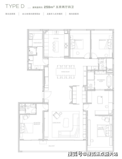 合生缦云提供的户型从168㎡起跳,包括四室两厅三卫的“四叶草户型”,所有户型均采用专梯专户设计,确保居住的私密性和舒适性。建筑外立面采用了轻质铝板幕墙和弧形阳台设计,不仅美观大方,还提供了绝佳的观景视野。