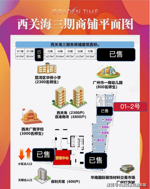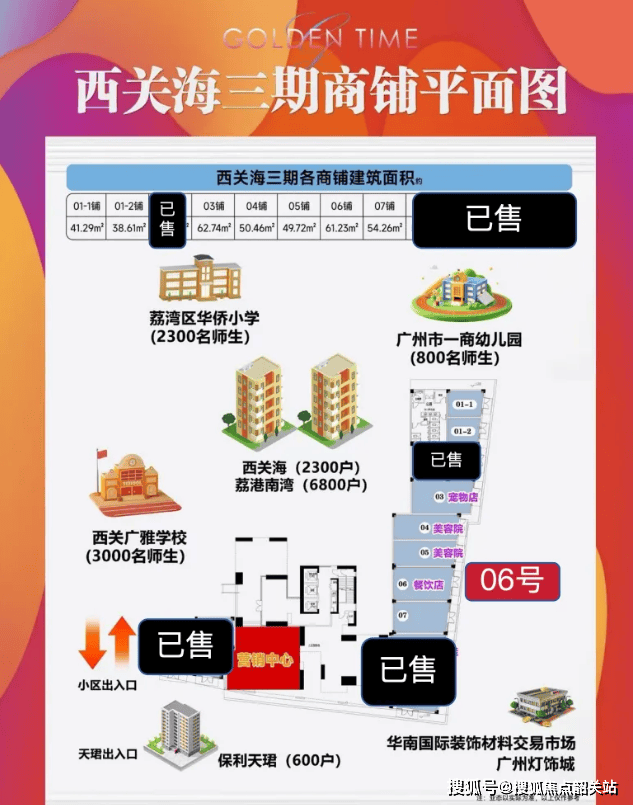 金众西关海在售商铺为三期01-2号、06号、07号铺,主力销售面积38-66㎡,仅剩最后3套,均为临街旺铺,7.2米层高,买一间享双倍使用空间,可灵活分隔为两层,大大提升了空间利用率与投资回报率,是投资置业的绝佳选择,具体户型详情如下: