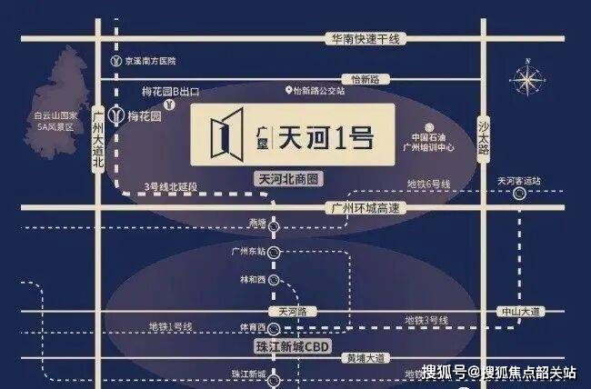 地理位置优越:位于广州中轴线上,靠近地铁3号线梅花园站,2站到广州东站,5站直达珠江新城,与珠江新城CBD仅15分钟通勤时间。