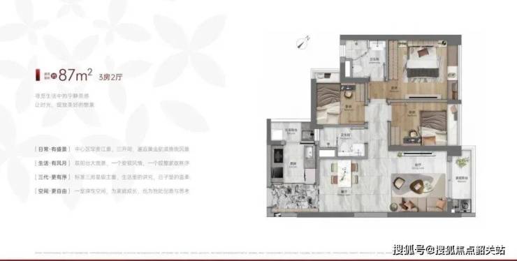 建面87-89平三房两卫,带主套设计,89平四开间朝南,三个房间带有大飘窗,总价330-380万左右。
