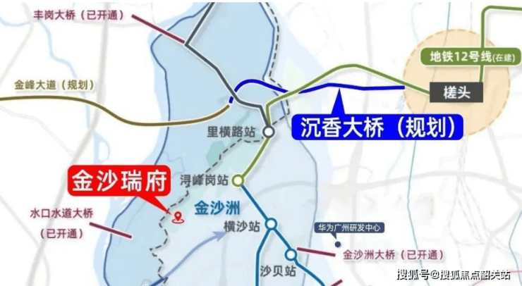 八大线桥环绕:包括金沙洲大桥、大坦沙大桥、沉香大桥(在建)、同心桥(在建)、水道口大桥、黄岐大桥、丰岗大桥、碧江大桥(规划中),全面环绕,打造畅达交通环境。