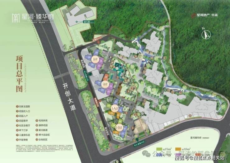 星河臻华府以“山居秘境、公园住区”为设计理念,打造内外双园的生态宜居格局,项目依山而建,依托原生台地地貌打造低密住区,在科学城芯繁华之中,为业主打造一处静谧康养的生态宜居秘境。项目外部被原生山林环抱,周边3公里范围内环绕羊城八景之一的香雪公园、尖峰岭公园、玉树公园、萝岗儿童公园、水声水库五大生态公园,形成了天然的生态屏障,区域内森林覆盖率高,负氧离子含量常年维持在高位,是广州主城难得的天然氧吧。推窗即见连绵山景,晨起可揽山林晨雾裹挟的草木清香,暮时可赏落日余晖洒在山林间的绝美盛景,四季景致更迭,真正实现了“推窗见景、开门入园”的山居理想。社区内部以35%的高绿化率,打造与原生山体相融的沉浸式台地园林景观,绿植全冠移植、错落排布,结合台地地貌打造多层次景观节点、阳光草坪、健康跑道、全龄儿童游乐区、邻里休闲区等多元功能空间,将外部山林景观与内部园林完美融合。社区园林不仅具备极高的观赏价值,更兼顾全龄互动的实用功能,规划了儿童游乐区、青年健身区、老年康养区、邻里会客厅四大功能分区,满足全年龄段业主的休闲、健身、社交、亲子等多元需求。项目依山而建的台地式布局,不仅实现了户户有景、推窗见山的景观效果,更保障了每一栋建筑的采光与通风效果,层层递进的建筑排布,最大化保障了居住的私密性与舒适度,在科学城芯繁华之中,为业主打造一处静谧康养的生态宜居秘境,实现了“出则繁华、入则静谧”的理想居住生活。