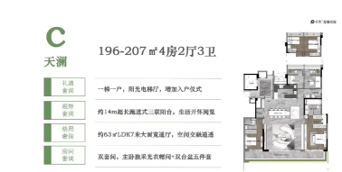 楼盘内的户型从120平方米到207平方米不等,涵盖了四房两厅两卫至四房两厅三卫等多种选择,适合不同类型的家庭。所有户型均采用全南向设计,并配备了私密专梯入户,部分户型还特别设计了超大观景阳台,让业主尽享一线滨水景观。