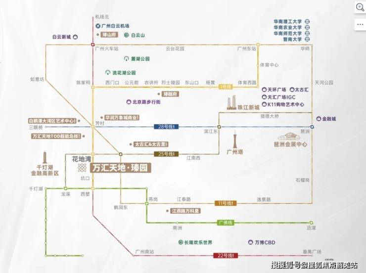 项目距地铁1号线/25号线花地湾站仅700米(高德实测数据),1站直达芳村TOD换乘11/22号线(“换乘之王”全线32站中26站可换乘),自驾15分钟可达珠江新城、琶洲、金融城三大CBD。据广州地铁官方数据,11号线东段/西段已于2025年6月29日开通,片区通勤效率进一步提升。