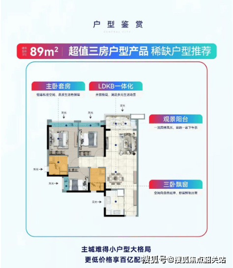 合生中央城提供多种户型选择,包括建面约86㎡的三房一卫,售价约200万元;建面约89㎡的三房两卫,售价约220-250万元;建面约96㎡的南向三房,售价约250万元;以及建面约109㎡的四房,售价约300万元。这些户型设计合理,动静分区,部分户型拥有大飘窗和景观阳台,提升了居住舒适度。