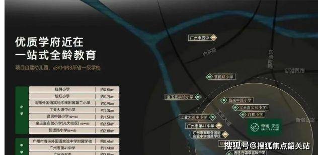 项目自带一所幼儿园,小学需依赖周边。距离最近的公办小学是海珠区金碧第一小学(西校区)和海珠区石溪劬劳小学,两所小学对口初中分别在第五组和第七组,但学校尚未官宣,教育方面存在不确定性。售楼处电话:4009909752 。