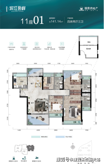小区规划:21栋高层洋房,除12栋层高为25层之外,其他楼栋层高都为26层,约1740㎡临街潮趣商业街。