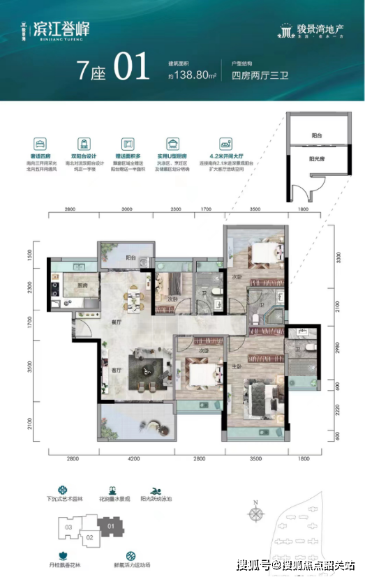 ①享有滨江新区“一横三纵”的交通网络,30分钟快速通达全城;一横是华盛路(作为滨江新城的中轴线,东西无缝接驳城市快速主干线);三纵分别是华盛路连接的江门大道、天沙河连接的滨江大道和建设路;