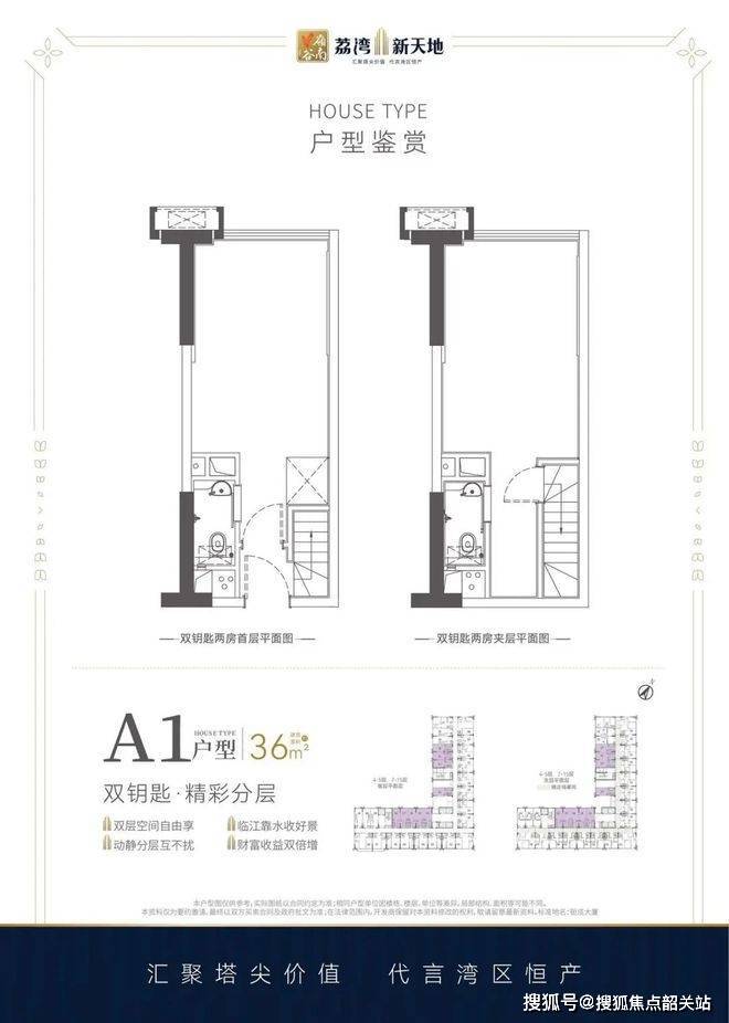 户型设计是荔湾新天地最吸引投资客和自住客的部分,主推36-93平方米的双钥匙LOFT产品,涵盖两房到五房多种组合。核心卖点在于4.5米层高的复式挑高设计,买一层实际能使用两层空间,赠送面积和拓展空间都比较可观。很多户型做到了全明格局,几乎没有暗厅暗卫,采光通风表现不错。