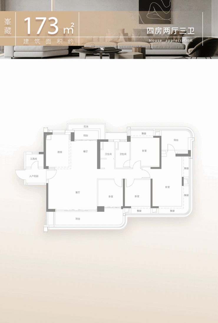 4. 建面约173㎡四房两厅三卫(双套间设计,高端改善型户型)