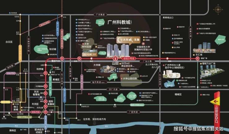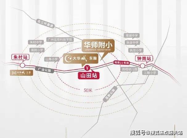 大华城——涵盖大华朱村中心城市地标(规划中)、地铁、教育、产业、商业、生态各项配套,名副其实的一生大城,未来容纳广州东约 30 万人口繁华居住地。