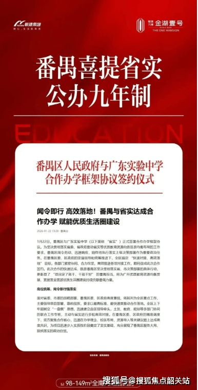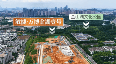 敏捷·万博金湖壹号作为敏捷集团深耕番禺30余年的湖居壹号作品,总占地约7.45万㎡,建筑面积约23.98万㎡,首期占地约4.57万㎡,建筑面积约14.67万㎡,容积率3.21,规划首期10栋27-31层住宅,车位比1:1.55,由敏捷物业提供高标准服务,预计2027年底交付。项目紧邻番禺最大湖泊金山湖文化公园,红线内公园面积约108.7万㎡(水域约35万㎡),相当于1.5个天河公园、3个越秀东山湖公园、3.6个荔湾湖公园,湖面面积远超东山湖1.6倍、荔枝湖2.2倍、翠湖3倍、世界大观日月双湖7倍,真正赋予项目“城市级湖居”潜力。地处南中轴万博CBD版图内,斜对祈福缤纷汇,北临金山湖,南靠广工番禺校区,叠加22/26号线市广路站约800米双地铁、规划36班九年制学校正式官宣引入百年省实教育集团培兰小学,12班幼儿园自带,教育链条一步到位。项目以“万博CBD+金山湖稀缺湖景+省实教育集团+双地铁+低密园林”五大核心价值,填补万博北部湖居高端改善空缺,成为番禺值得期待的全新湖居大城。