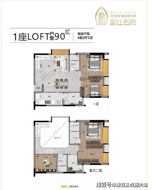复式公寓(71-95㎡四房):5.5 米层高 “买一层送一层”,实用面积约 150㎡,四房布局满足多人口居住,同时可兼顾办公用途,宜居宜商,投资自住皆可。