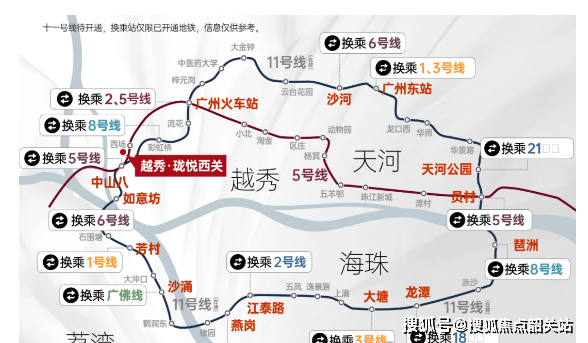 交通出行优势显著,属三地铁交汇覆盖范围。距地铁 5 号线与 13 号线二期(在建)西场站步行约 700 米,距 5 号线与 11 号线中山八站约 1 公里。通过 5 号线可直达珠江新城、淘金等商圈,未来 11 号线(环线)贯通后,能快速对接琶洲、金融城等核心板块,13 号线二期则串联白云、天河等区域,无论通勤或跨区出行均高效便捷。