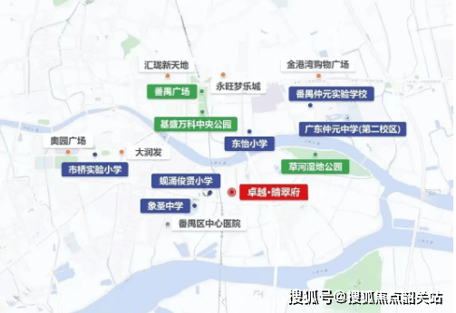 项目教育配套覆盖全龄段,解决家庭教育刚需,是核心优势之一。家门口即有两所优质学校:市桥实验小学蚬涌俊贤学校(步行约 300 米,广州市一级学校,区办学体制改革试点单位,师资优秀、荣誉众多)、桥城中学集团象圣学校(步行约 600 米,连续 16 年番禺区公办初中中考第一,连续 8 年办学绩效评比第 1);周边 800 米内有诺宝幼儿园,3 公里范围内还有蚬涌俊贤小学、象圣小学、广东番禺中学等,从幼儿园到高中的教育资源环绕,家长无需担忧学位与接送问题,孩子可享连贯优质教育。