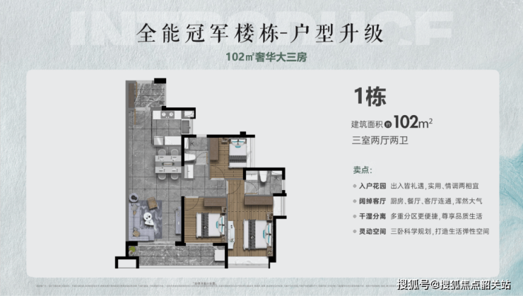 除此之外,还有建面约72㎡两房、102-134㎡三四房,产品选择丰富。