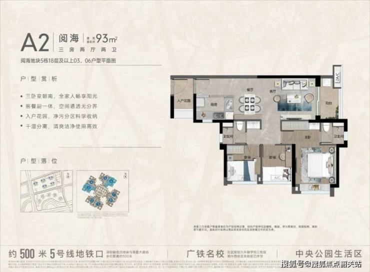 万科黄埔新城在户型设计上充分考虑不同家庭结构与生活阶段的需求,推出多元实用的优质户型 。阅海 93㎡三房两厅两卫户型,布局精巧,功能分区合理。三开间朝南设计,确保充足采光;入户花园增添归家仪式感,客餐厨一体设计,增强家庭互动性。部分户型更是实现三卧室朝南、南北通透,搭配约 6.3m 宽景阳台,拓展生活空间的同时,可尽情欣赏社区美景与滨水风光,适合新婚夫妻或三口之家。