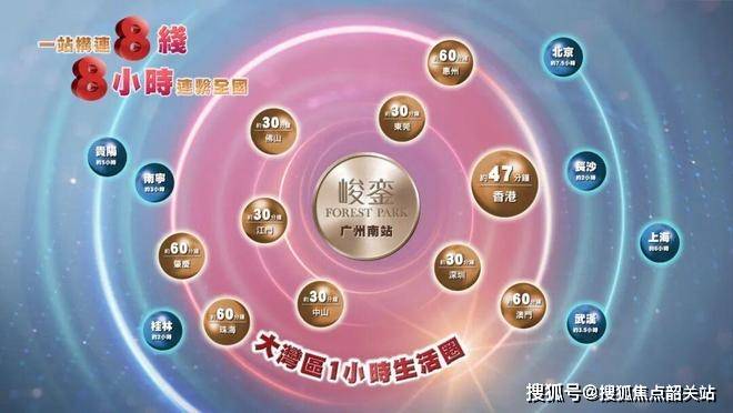答:依托广州南站“4高铁+4城际+4地铁+5快速干线”立体网络,可实现47分钟直达香港、1小时通达湾区主要城市、8小时覆盖全国核心城市,区域内多条快速路与城际线路进一步提升市内通达效率。