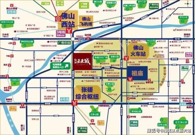 绿地未来城地理位置优越,紧邻四大交通枢纽:张槎枢纽、佛山机场、佛山西站和佛山火车站,均在3-6公里范围内。同时,项目坐拥双地铁(佛山地铁2号线、4号线)和一城轨(广佛环线),其中张槎枢纽站是佛山最大的地铁站之一。根据政府规划,项目周边还将建造禅城区唯一的三轨道交汇枢纽站,涵盖佛山地铁2号线、4号线和广佛环线,极大地提高了居民的出行便利性。沈海高速和广佛线的接入,更使得前往广州海珠、天河区变得快捷方便。