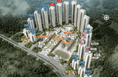 总占地面积约13.3万㎡,总建筑面积达56.3万㎡,规划建设20栋高层洋房,楼层高度涵盖18层至50层不等。地块呈三面环山格局,背靠山体公园,自然生态资源优越。整体定位为56万方全能生活大城,融合居住、教育、商业、运动等多元功能。