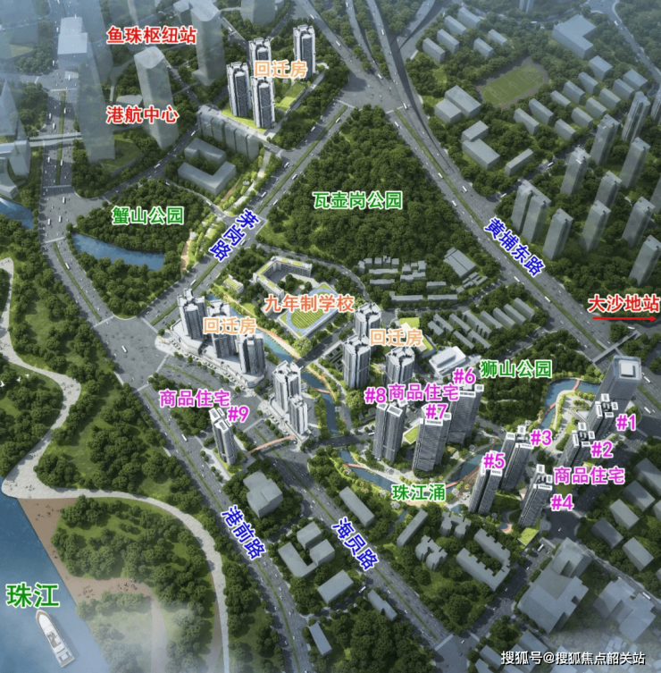 中交四航珠江春位于黄埔区南部滨江区域,鱼珠CBD板块,是老黄埔旧改中距离天河最近的项目。项目紧邻地铁5号线鱼珠站和大沙地站,步行可达,轻松直达珠江新城、金融城等核心商务区。此外,项目周边还有中山大道、黄埔大道等城市主干道,自驾出行同样便捷。