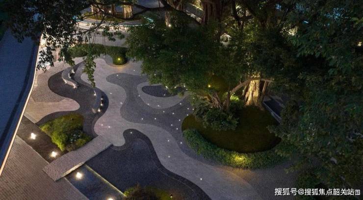 项目外部保留二十余株原生古榕树,承载岭南地域生态文脉,营造静谧的城市自然界面;内部打造约1.5万㎡中央立体园林,以围合式布局规划近百米楼间距,实现景观视野与通风采光的优化。