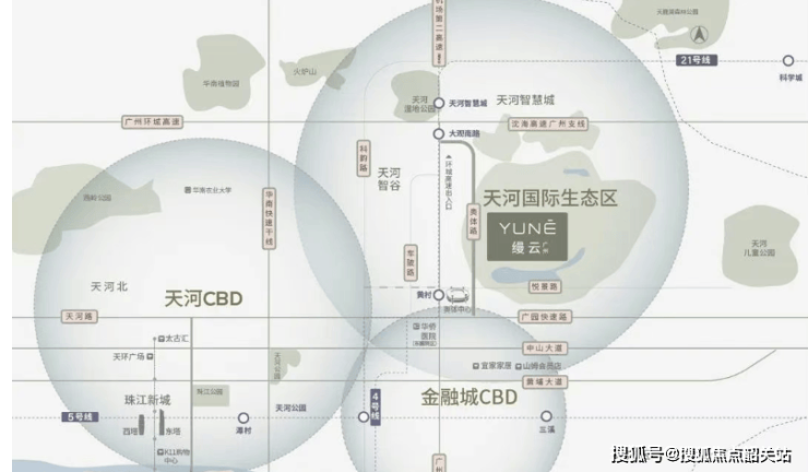 项目交通出行以自驾为主,周边临近科韵路、车陂北延线等主干道,规划中的悦景路升级工程(西起科韵路,东至车陂北延线,双向六车道,设计时速60km/h)将有效改善自驾体验,未来驾车前往天河CBD、金融城等核心区域更加便捷。地铁方面,最近的21号线大观南路站直线距离超过1公里,依赖地铁通勤需通过公交接驳,稍显不便。不过对于以自驾出行为主的中高端人群而言,当前交通网络基本能满足日常出行需求,且随着区域道路规划的落地,交通畅达性将进一步提升,实现与城市核心区的快速连接。
