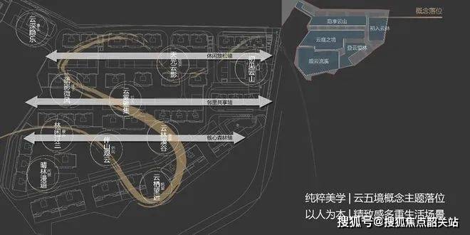 主题概念:以“云”为灵感,感受最本真的自然生活,提出了“行韵缦云·隐介藏境”的设计理念,旨在打造一个有温度、度假感的生活空间。