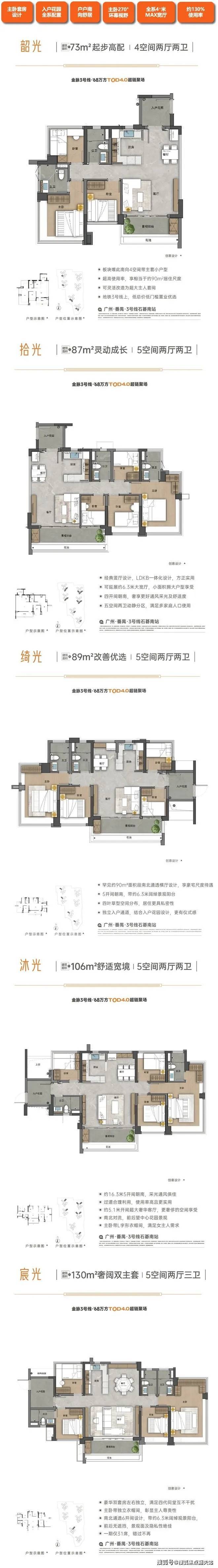 户型设计惊艳:主力在售建面约73-130㎡四至五室,凭借130%的超高得房率重新定义空间利用,户户配置入户花园,可灵活改造为玄关收纳、家政区或儿童游戏角,实际使用面积远超同面积段竞品。具体户型亮点: