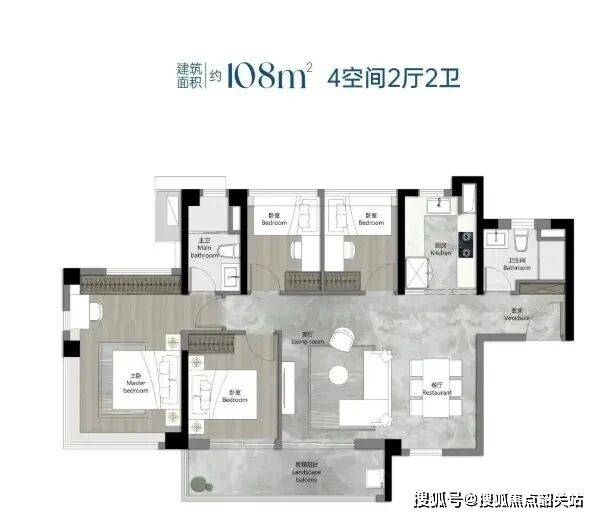 108㎡四房:总价560-600万,横厅设计,5.95米大阳台,部分高层望江。