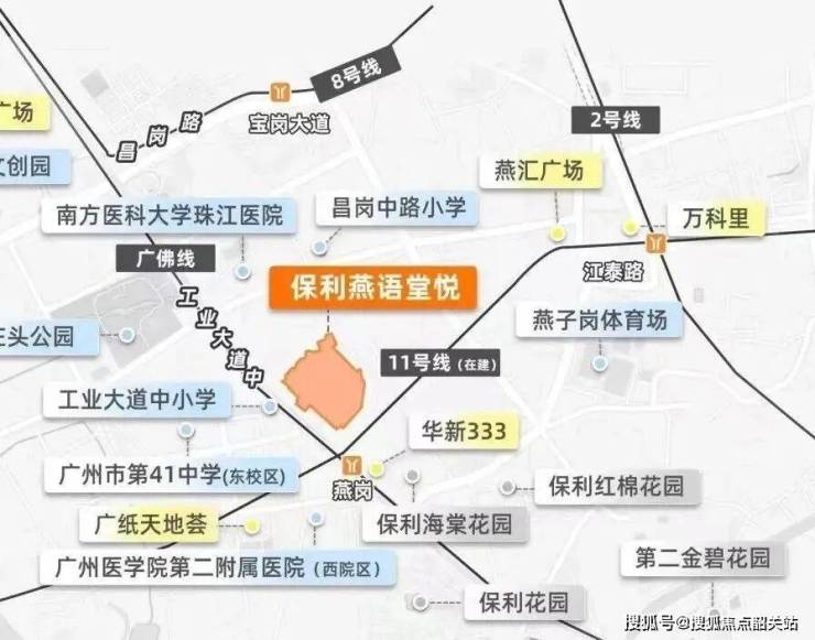 交通方面,保利燕语堂悦享有极高便利度。项目直线50米即到燕岗地铁站,是广佛线与11号大环线交汇点,未来大环线通车后,可实现高效跨城出行。4站可达上涌,8站可达琶洲,换乘其他线路也可轻松到达珠江新城、广州塔及太古仓等核心区域。地铁上盖优势使日常通勤快捷,特别适合在珠江新城和琶洲等地工作的高端白领家庭。同时,项目临近工业大道,可快速接入昌岗中路、内环路及新滘西路,开车至珠江新城或琶洲约20-25分钟,形成地铁与城市道路结合的多维交通网络。公交配套同样完善,500米范围内多达28条线路,13个站点可满足日常通勤和生活出行需求,无论是工作通勤还是休闲购物,交通便捷性均为项目的重要加分项。