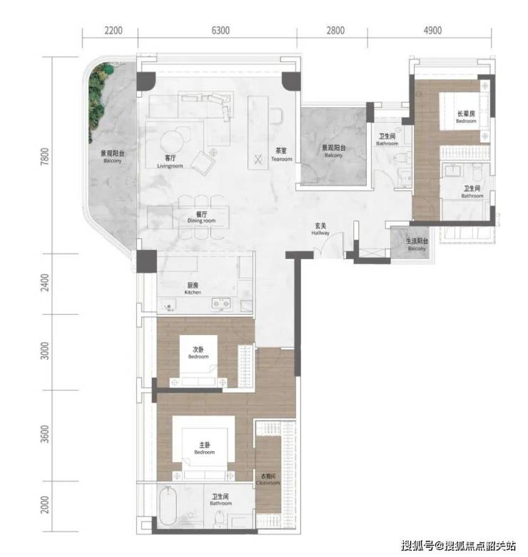 其中,建筑面积198㎡的四房带7.8米L型景观阳台,可揽东平河及小区园林双景,主人房面积几乎与客厅持平,居住尺度十分阔绰。