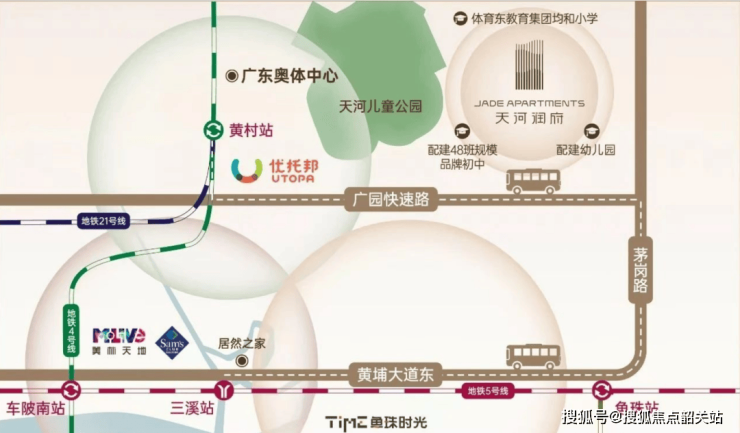项目距离4号线(黄村站)、5号线(鱼珠站)、7号线(姬堂站)均在3公里左右,对于依赖公共交通的居民来说可能稍微有些不便。不过,开发商贴心地提供了免费楼巴服务,两条线路分别连接主要地铁线和商圈,通达天河东和黄埔核心区域。自驾出行则更加方便,出门即可上广园快速,前往金融城、琶洲等地大约20分钟车程。