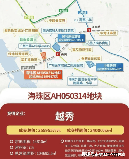 在海珠西广纸板块持续兑现的背景下,由越秀地产于2025年以楼面价3.4万元/㎡竞得的广纸314地块,正式命名为越秀·熙悦江湾。作为广州地铁11号线开通后首个亮相的新规住宅项目,熙悦江湾凭借“双地铁上盖、120%超高使用率、全南向户型、宝玉直教育集团成员校、成熟生活圈”五大核心优势,迅速成为海珠西刚需与刚改家庭的关注焦点。