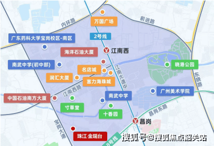 珠江·金瑶台坐落在海珠区的核心地段——江南西板块,这里是广州市的传统商业和文化中心之一。项目周边交通便利,拥有双地铁配置,包括8号线宝岗大道站(约280米步行距离)和2号线江南西地铁站(约800米步行距离),让居民能够快速抵达城市的各个角落。