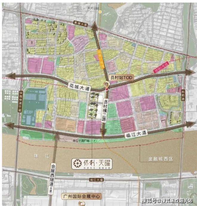 项目地理位置得天独厚,位于规划花城大道南侧,周边华南快速干线、黄埔大道中、临江大道及科韵路等主要交通干道环绕,交通便捷。地块东北侧距地铁 5 号线与 11 号线交汇的员村站仅 150m,通过这两条地铁线路,可轻松连通珠城、琶洲、天河北、白鹅潭等广州核心商务圈,交通通达性极强,为业主的日常出行与商务活动提供了极大便利。