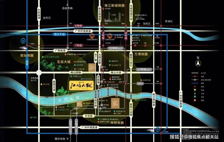 北邻万博 CBD ,西侧广州南站商务圈 ,南邻南沙经济发展区 ,东侧接驳东莞、深圳。