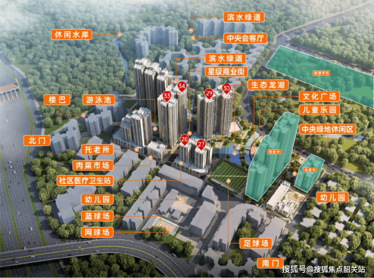 亲水园林:10 万㎡的亲水园林,不仅有郁郁葱葱的树木,还有清澈见底的水系,营造出“推窗见绿、出门亲水”的生态宜居场景。