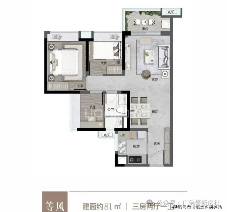 建面约81㎡三房一卫:总价约XXX万元起