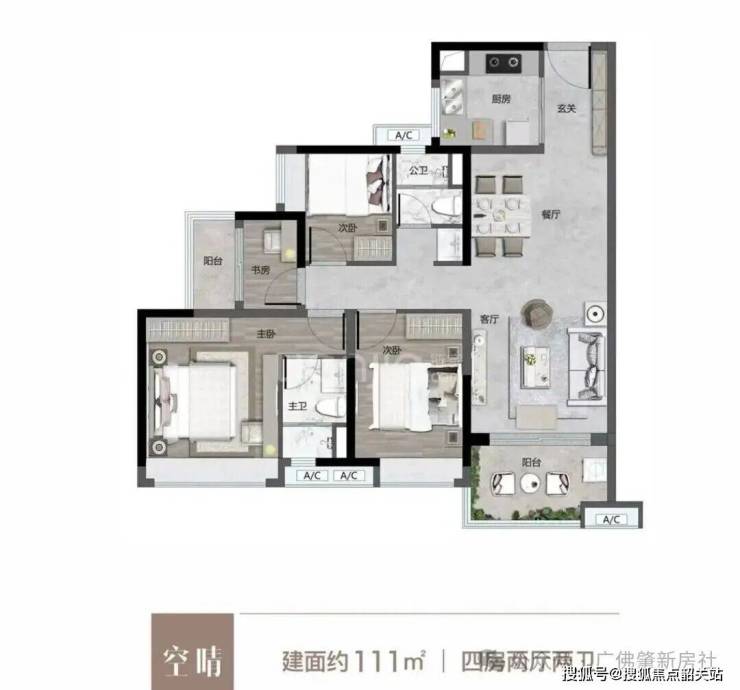 建面约111-113㎡四房两卫:总价约XXX-XXX万元