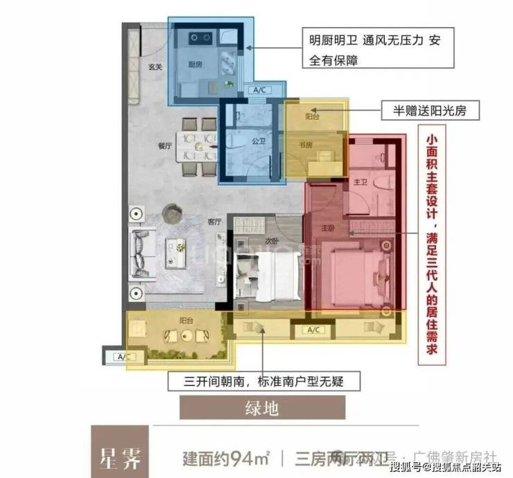 建面约92-96㎡三房两卫:总价约XXX-XXX万元
